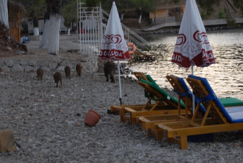 Tatil beldesi Marmaris'te sokakları mesken tutan aç domuzlar; bahçeleri, çöpleri, plajları talan edip, yavru kedileri ve saldırdıkları köpekleri telef ediyor. Büyük korku yaşayan vatandaşlar acil önlem alınmasını istiyor.