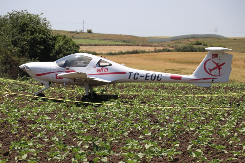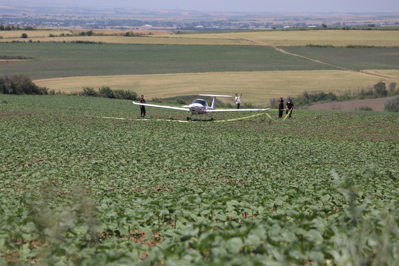 Tekirdağ'da, özel bir havacılık okuluna ait eğitim uçağı tarlaya zorunlu iniş yaptı.