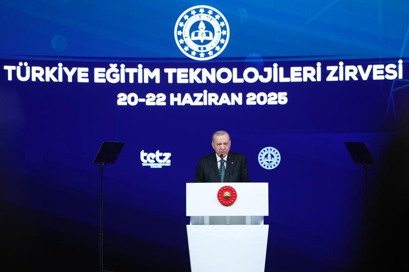 Yapay zeka ve inovasyonun eğitimdeki rolünün tüm yönleriyle ele alınacağı zirvenin hayırlı olmasını dileyen Erdoğan, "Bugün aynı zamanda 2024-2025 eğitim öğretim yılını da nihayete erdirmiş bulunuyoruz. Bu vesileyle ülkemizin dört bir yanında karne heyecanı yaşayan tüm evlatlarımızın tek tek gözlerinden öpüyor, her bir yavrumuza Rabb'imden üstün muvaffakiyetler niyaz ediyorum. Türkiye'nin yarınlarını şekillendirecek Türkiye Yüzyılı tasavvurumuzu her veçhesiyle hayata geçirecek bu evlatlarımızın kıymetli ailelerine, Edirne'den Iğdır'a 81 ilimizin tamamında, köylerimizde, ilçe ve şehir merkezlerimizde fedakarca görev yapan tüm öğretmenlerimize, kar, yağmur demeden, mesai mefhumu gözetmeden özveriyle çalışan maarif ordumuzun bütün neferlerine en içten şükranlarımı sunuyorum." diye konuştu.