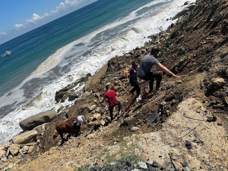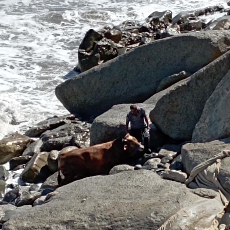 Gözleri bağlanan boğa, iple kesim alanına götürülerek kesildi. Olayla ilgili konuşan Metin Kayabaşı, "Burada hayvan kesime getirilirken arkadaşlar ellerinden kaçırdılar. Denize doğru hayvan kaçtı. Kayadan denize atladı boğa. Dalga olduğu için hayvan çıkamadı. Sahil Güvenliğe haber verildi. Sahil Güvenlik gelene kadar yarım saat içinde boğa kıyıya 100-200 metre ilerledi. İlerideki bölümden kıyıya çıktı. Sonra itfaiye vasıtasıyla kıyıdan yukarıya çekildi" dedi.