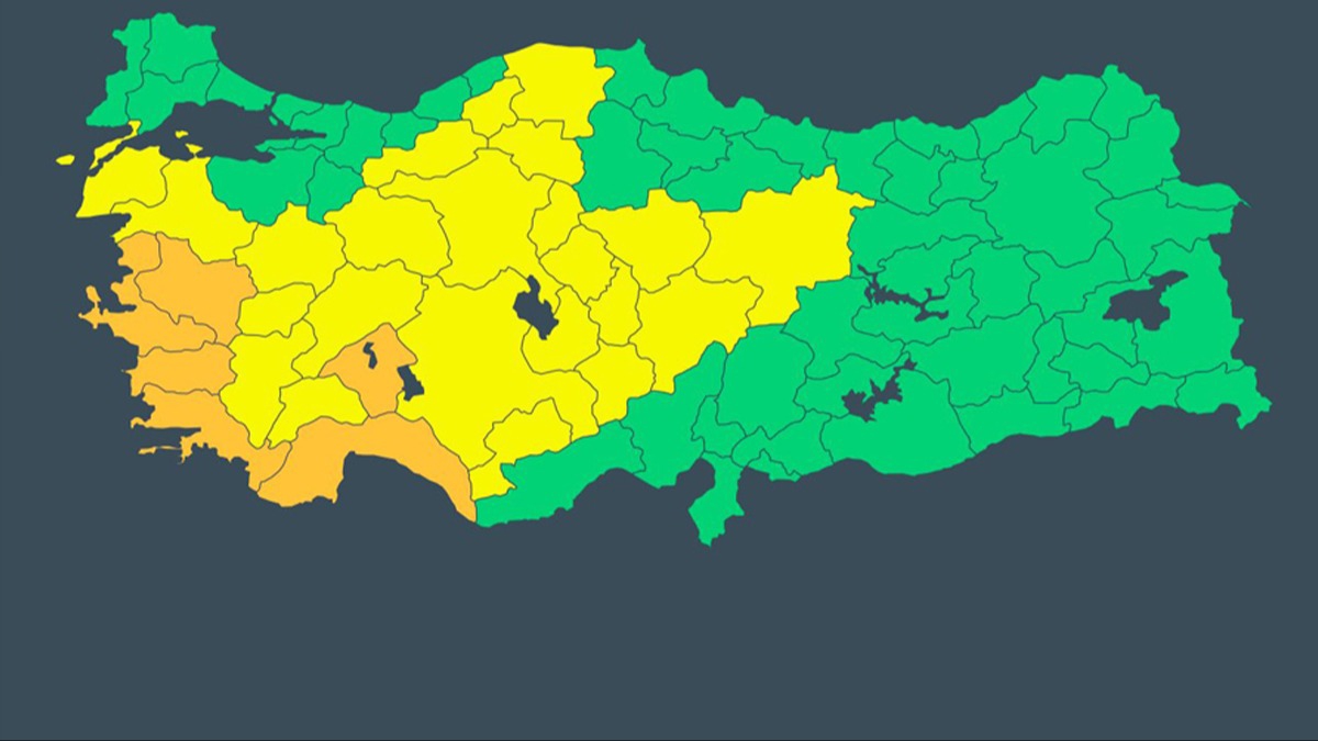 İçişleri Bakanlığı, sosyal medya hesabından yapılan paylaşımda, Meteoroloji Genel Müdürlüğü'nden alınan son bilgilere ve yapılan değerlendirmelere göre; 24 Aralık 2024 Salı günü 6 ilde İzmir, Manisa, Muğla, Antalya, Aydın, Isparta için turuncu uyarı verildi. Yapılan açıklamada, turuncu uyarı verilen illerde yaşayan vatandaşlara AFAD tarafından SMS yoluyla bilgilendirilme yapılacağı bildirildi.
