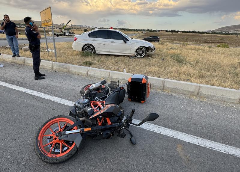 Otomobilin refüje çıkarak durabildiği kazada motosiklet sürücüsü ile otomobilde bulunan 3 kişi yaralandı.