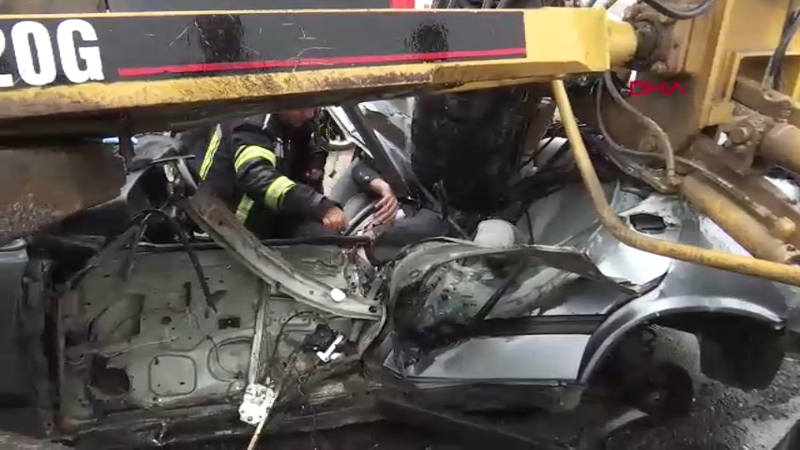 Kaza, öğle saatlerinde Prof. Dr. Nuri Orhan Bulvarı'nda meydana geldi. İsmi öğrenilen sürücüsünün kontrolünü kaybettiği 23 AFA 190 plakalı otomobil, karşı şeride geçerek, seyir halindeki iş makinesinin altına girdi.