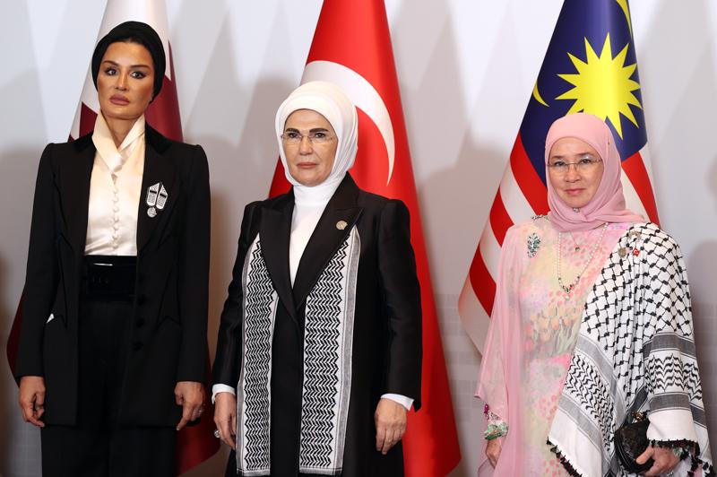 "10 Ocak 2009 tarihinde, 'Filistin'de Barış İçin Kadınlar Toplantısı' vesilesiyle İstanbul'da lider eşleri olarak bir araya gelmiş ve dünyaya 'Gazze'ye Destek İçin İstanbul Çağrısı'nı duyurmuştuk. Bu çağrı, zalimlerin karşısında barışın diliyle birleşen güçlü bir iradenin ifadesiydi. 2023 Kasım'ında ise İstanbul'da gerçekleştirdiğimiz 'Filistin İçin Tek Yürek Lider Eşleri Zirvesi'nde, Filistin için yeniden yekvücut olduk. Zirvede tek yürek haykırdığımız barış mesajı, hala zulme karşı aynı kararlılıkla yankılanıyor. Bugün, Her Şeyden Önce Eğitim Vakfı Başkanı ve BM Sürdürülebilir Kalkınma Hedefleri Savunucusu, değerli dostum Şeyha Moza bint Nasser'ın öncülüğünde yayınlanan 'Çatışma Bölgelerinde Yaşayan Çocukların Eğitimi Açısından Vahim Bir Yıl Ortak Bildirisi' ile sesimizi, o günlerdeki inançla bir kez daha yükseltiyoruz."