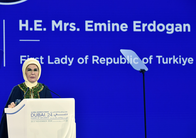 Emine Erdoğan, kadının emeği ve vizyonu olmadan çağın hızına erişmenin mümkün olmayacağını vurgulayarak, "Geleceğe atılmış ortak ve güçlü bir adım olan Forum'da, başta Dubai Emiri Şeyh Muhammed bin Raşid El Maktum ve Kadın Kuruluşu Başkanı Şeyha Manal bin Raşid El Maktum olmak üzere, emeği geçen herkese şükranlarımı sunuyorum." ifadesini kullandı.