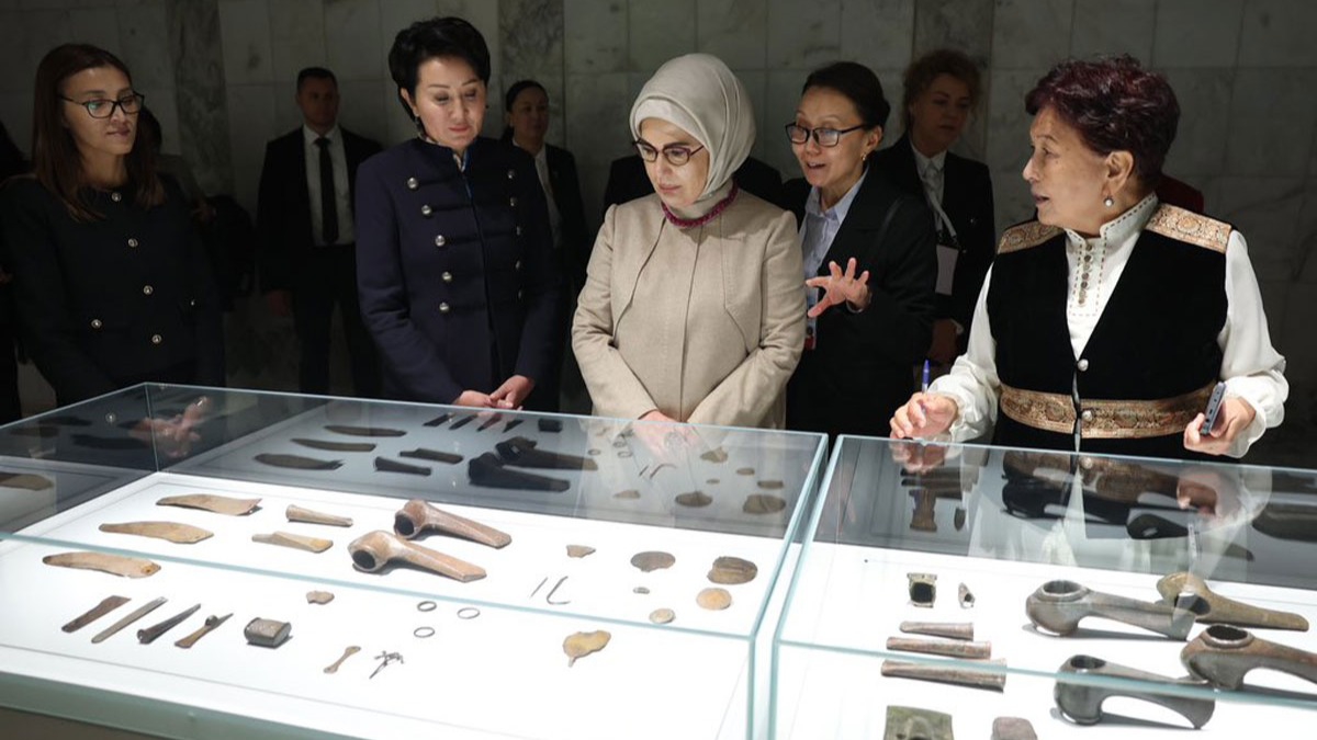 Müze ziyaretine ilişkin sosyal medya hesabından da paylaşımda bulunan Emine Erdoğan, Orta Asya'nın derin tarihine açılan bir kapı olan Kırgız Milli Tarih Müzesi'ni ziyaret ederek, Aygül Caparov ve Aniko Levai ile yüzyıllar öncesinden bugüne ulaşan eserleri incelediklerini belirtti.