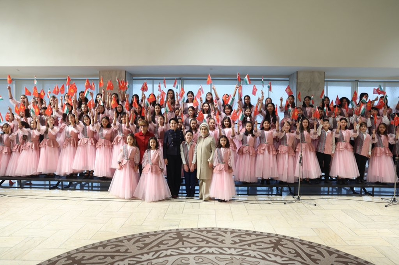 Daha sonra lider eşlerine, Kırgızistan Şubina Müzik Okulu Korosu tarafından Türkçe, Macarca ve Kırgızca şarkılardan oluşan bir konser sunuldu.