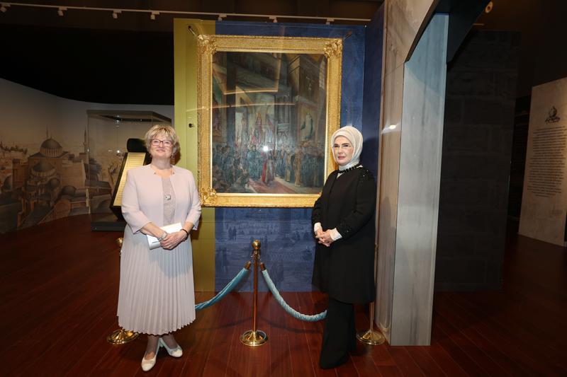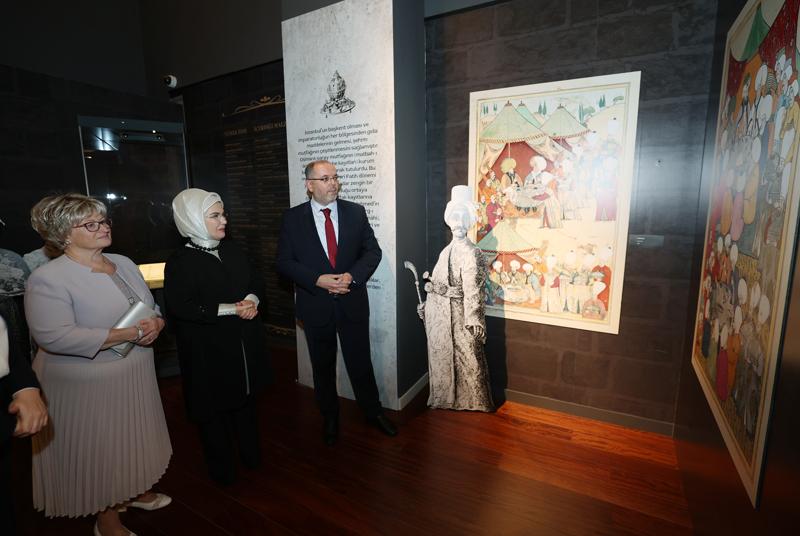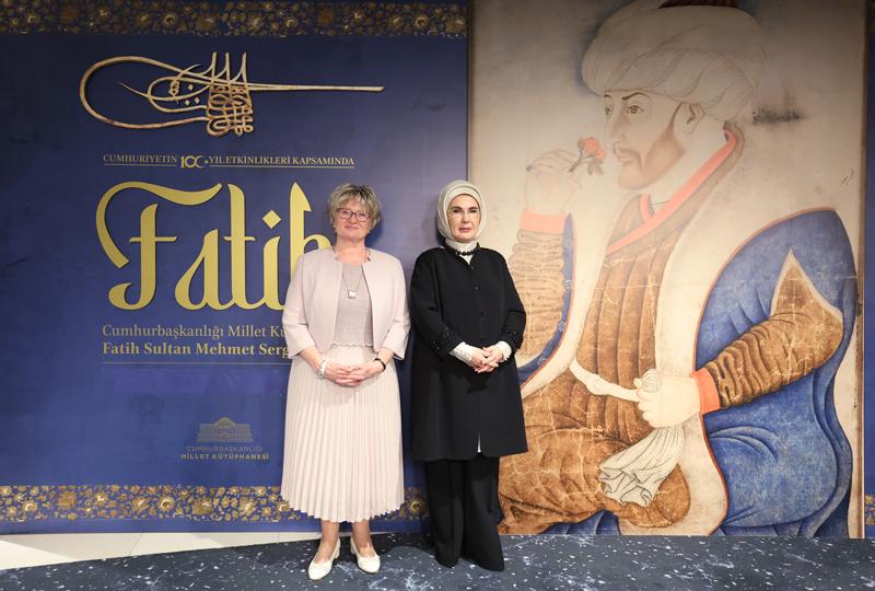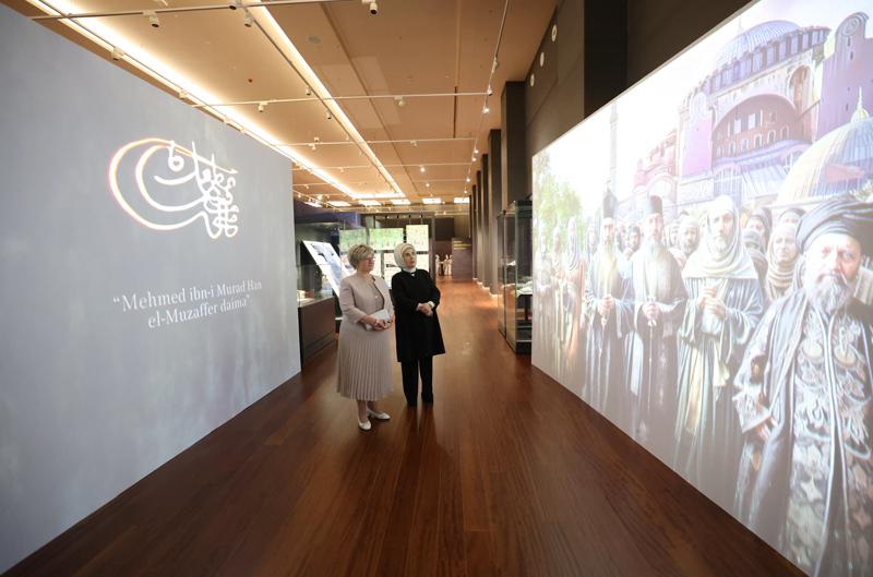 Lider eşleri, önce İstanbul'un fethedilişinin 571. yıl dönümünde Fatih Sultan Mehmet'i anmak için açılan Fatih Sultan Mehmet Sergisi'ni gezdi.