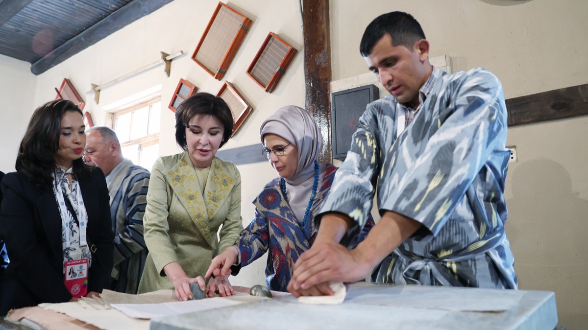 İki bin yıl boyunca bozulmadan bugüne ulaşabilen Semerkant kağıdının serüveninin hayranlık uyandırdığını kaydeden Emine Erdoğan, "Yaşayan Özbek Köyü Müzesi'nde ise yaşatılan ata geleneklerini görme ve inceleme fırsatı buldum. Zamana adeta meydan okuyan bu yer, aynı zamanda da doğa ile iç içe. Binlerce yıldır doğuyu ve batıyı buluşturan Semerkant, bir kültür hazinesi olarak varlığını sürdürüyor." ifadelerini kullandı.