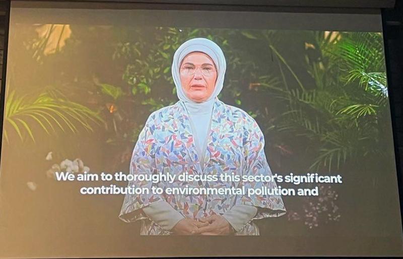 Emine Erdoğan, okyanuslara karışan trilyonlarca mikroplastiğin, yüzde 9'unun tekstil sektöründen geldiğine işaret ederek "masmavi" gezegenin renginin plastiklerle solduğuna dikkati çekti.