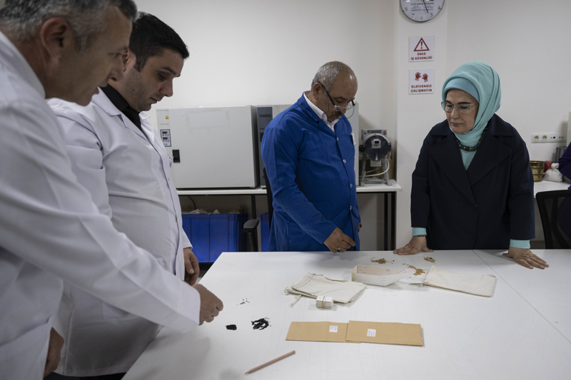 Tohum gen bankasında bulunan selektör ünitesi, tohum temizleme odası, fizyoloji laboratuvarı, kurutma odası, iklim odaları ve soğuk muhafaza odalarındaki çalışmaları inceleyen Emine Erdoğan, çalışanlar tarafından tohumların gen bankasında geçtiği işlemlere dair de bilgi aldı.