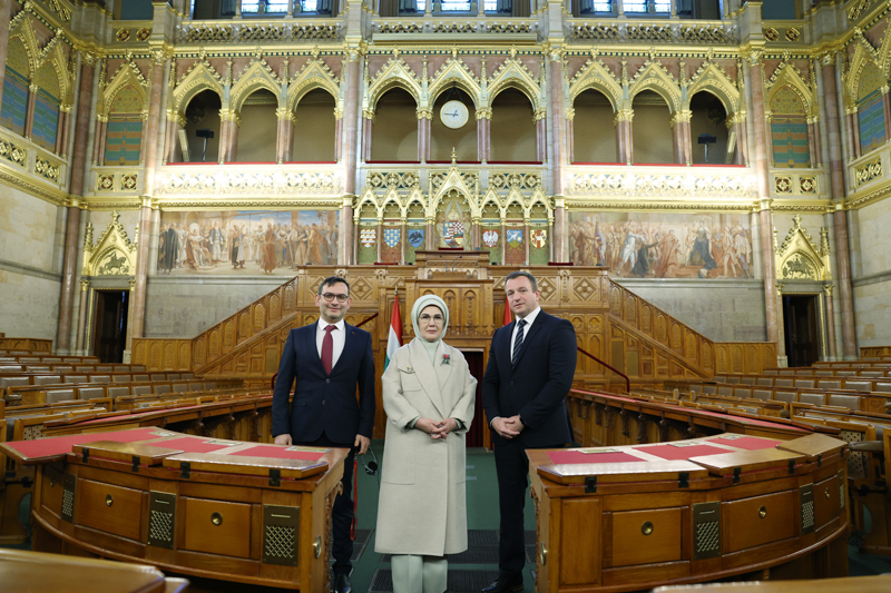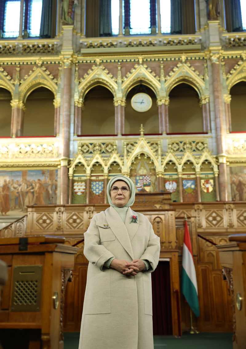 Macaristan Başbakanı Viktor Orban'ın davetine icabetle ülkeye resmi ziyarette bulunan Cumhurbaşkanı Erdoğan'a eşlik eden Emine Erdoğan, programları kapsamında ilk olarak Macaristan Ulusal Meclisinin bulunduğu Parlamento Binası'na geldi.