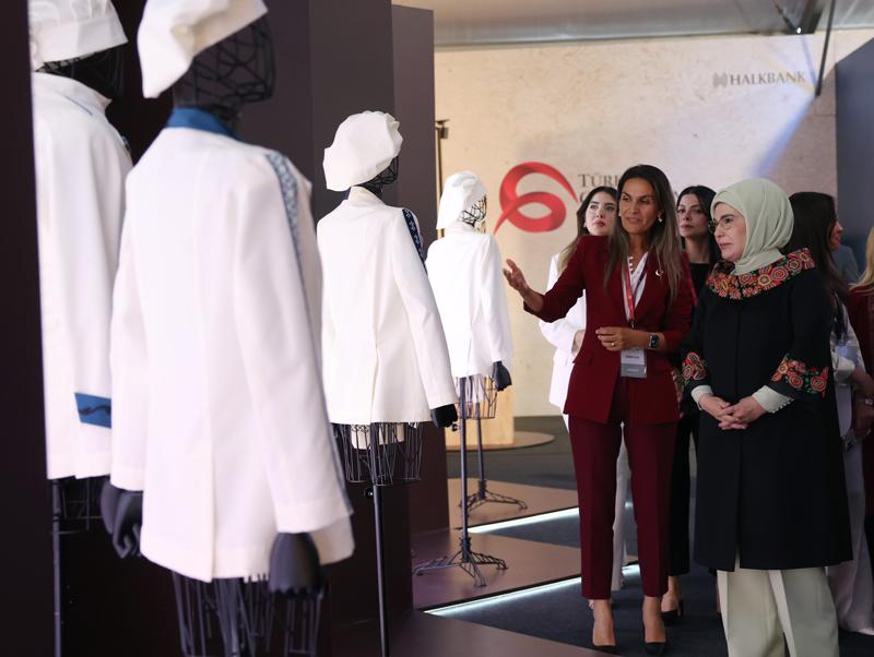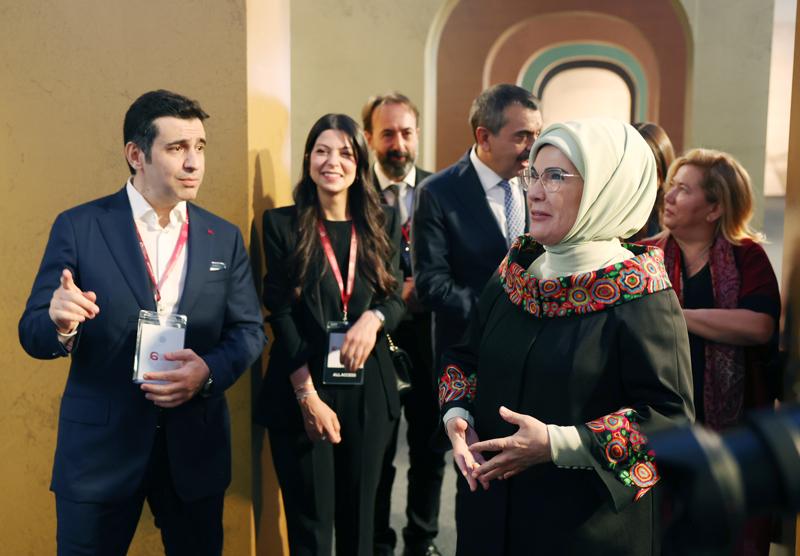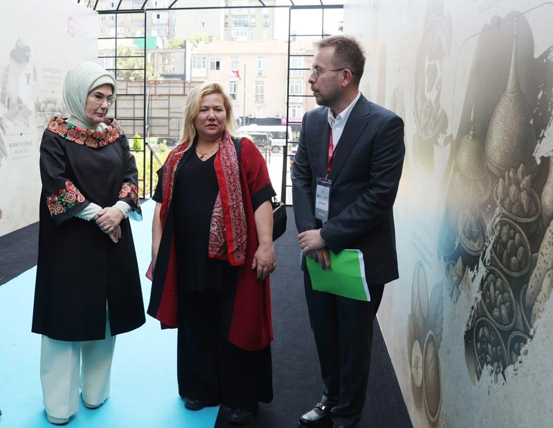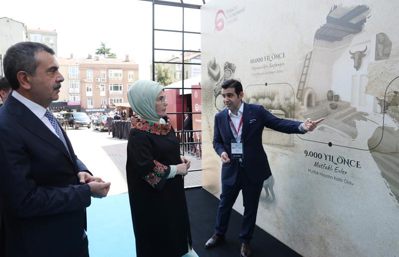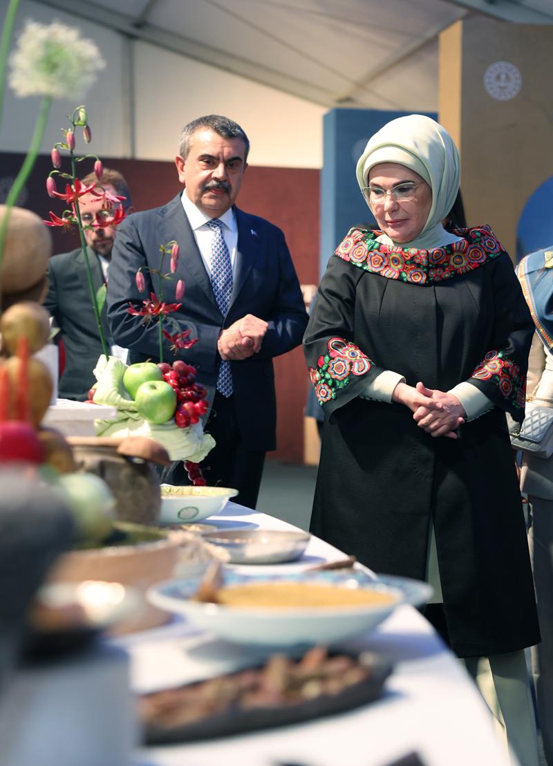 Emine Erdoğan, tanıtım programının yapıldığı alanda kurulan Gastronomi Tarihi, Anne Reçeteleri, Yedi Bölge Yedi Okul ile Gastronomi Liseleri Şef Kıyafetleri Sergileri'ni, Bakan Tekin ve şef Ömür Akkor'la birlikte gezdi.