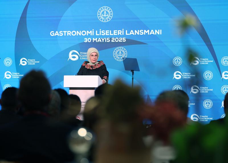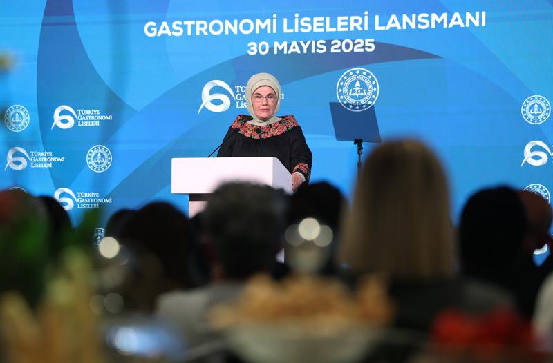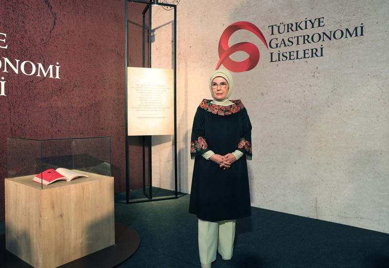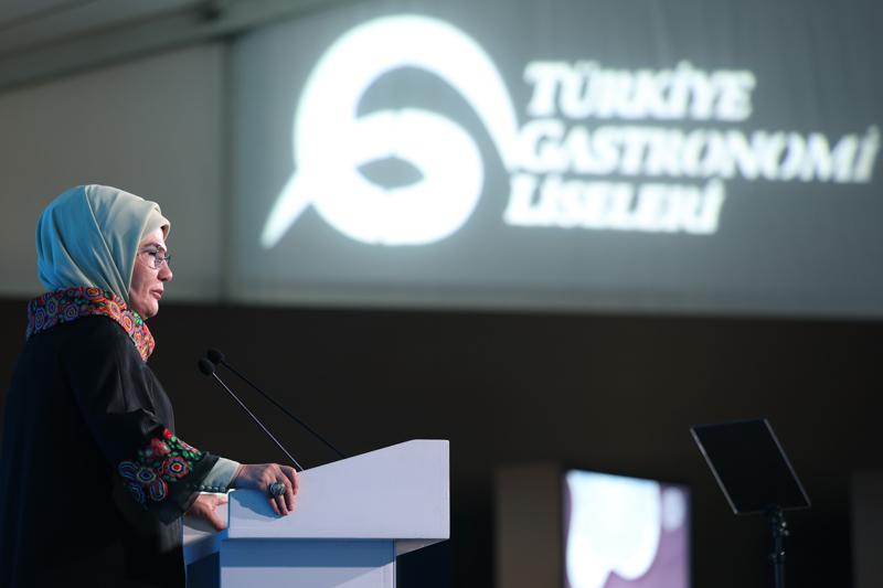 Emine Erdoğan, Türkiye'nin 7 bölgesinde hayata geçecek tematik gastronomi liselerinde öğrencilerin, bölgelerinin tüm gastronomi unsurlarını öğreneceklerini belirterek, "Yani 12 bin yıllık bir gastronomi hafızasından beslenecekler. Hem geleceğin hünerli elleri hem de mutfağımızı küresel ölçekte hak ettiği konuma yükseltecek temsilciler olacaklar inşallah." dedi.