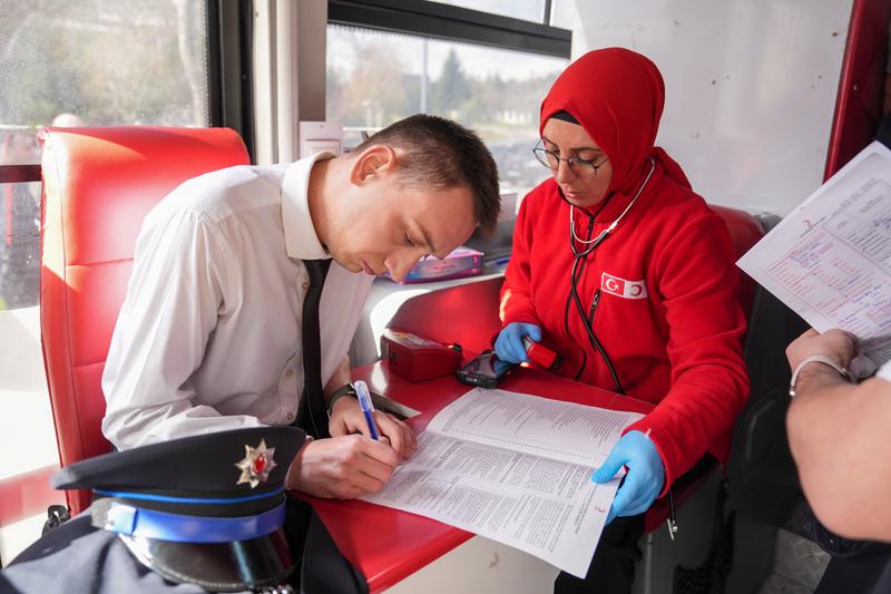 EGM'nin Sağlık Yerleşkesi önünde düzenlenen etkinliğe, Emniyet Genel Müdür Yardımcısı Mahmut Çorumlu, daire başkanları ve EGM personeli katıldı.Kan bağışının ardından program, günün anısına fotoğraf çekiminin ardından tamamlandı.<img class='rich-text-photo' src='https://imgs.stargazete.com/imgsdisk/2025/04/07/37557727.jpg'/><img class='rich-text-photo' src='https://imgs.stargazete.com/imgsdisk/2025/04/07/37557731.jpg'/><img class='rich-text-photo' src='https://imgs.stargazete.com/imgsdisk/2025/04/07/37557732.jpg'/>