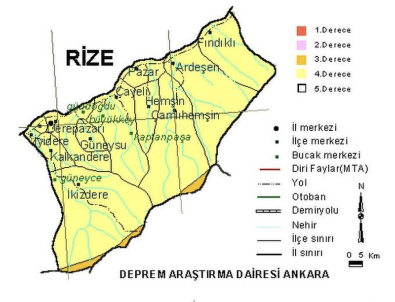 Türkiye'de deprem haritasında en az riskli iller 4. ve 5. derece deprem bölgelerinde yer alıyor. 4. derece bölgesinde bulunan Rize'de, deprem olması şaşkınlıkla karşılandı. Türkiye Deprem Haritasına göre, deprem riskinin en az olduğu dördüncü ve beşinci grupta yer alan iller ise Sinop, Giresun, Trabzon, Rize, Artvin, Kırklareli, Ankara, Edirne, Adana, Nevşehir, Niğde, Aksaray, Konya ve Karaman.