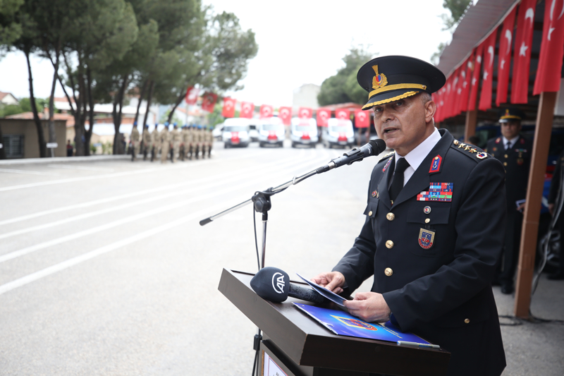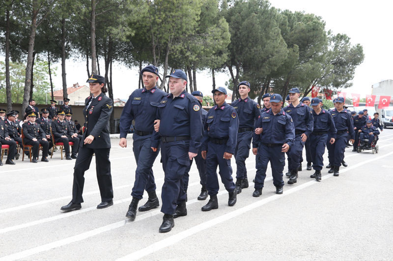 İl Jandarma Komutanlığı avlusunda düzenlenen tören, saygı duruşu ve İstiklal Marşı'nın okunmasının ardından başladı.