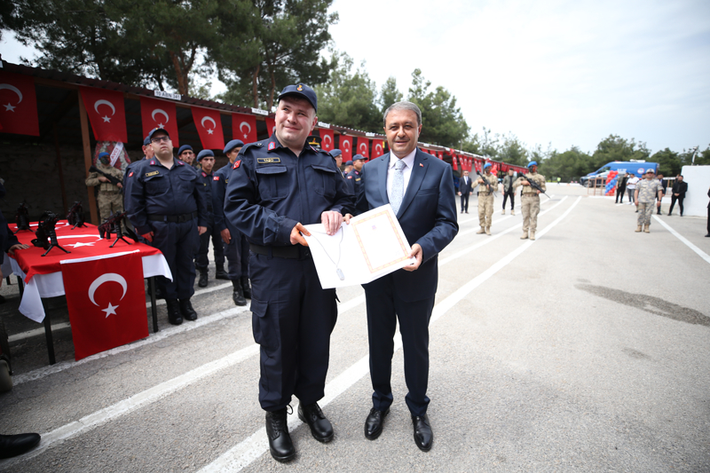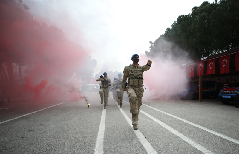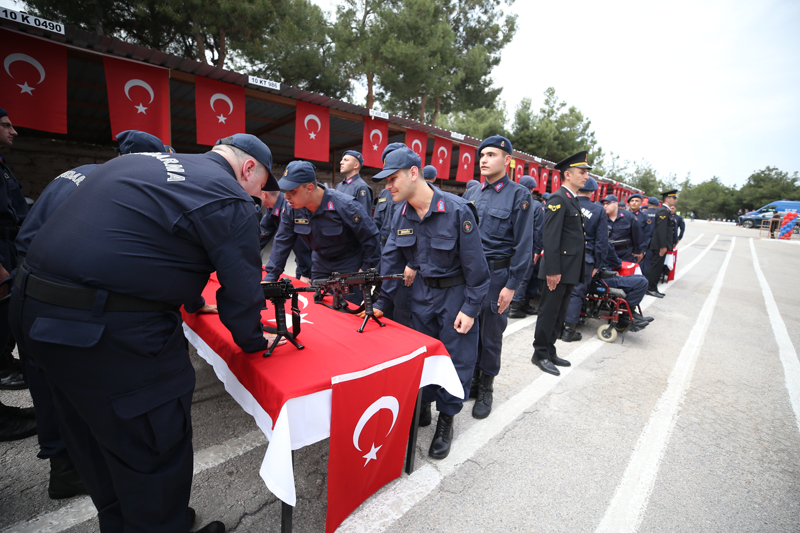 Konuşmanın ardından, 21 engelli jandarma er, komandoların da eşlik etmesiyle Türk bayrağı üzerine ant içti.
