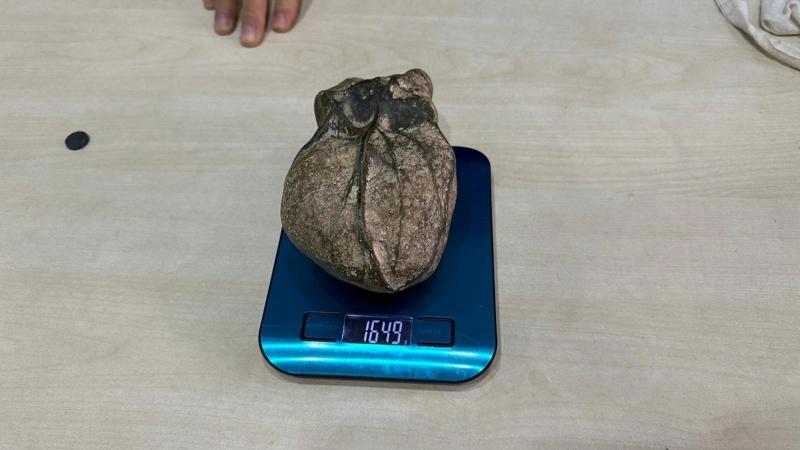 Yazıcıoğlu, "Şantiyemizde su kanalı çalışmaları yaparken, kepçe kullanırken enteresan bir taş fark ettik. Bu taşın tam bir kalbe benzeyen bir şekli vardı ve bizi oldukça meraklandırdı. Doğal mı yoksa yapay mı olduğunu anlamak için inceleme fırsatı bulduk ve uzmanlardan görüş aldık. Mıknatıs testi sonucunda, taşın damar kısımlarında mıknatısın tuttuğunu gözlemledik. Uzmanlar, taşın dökülmüş sıcak demire benzer insan kalbiyle aynı olduğunu belirttiler." dedi.