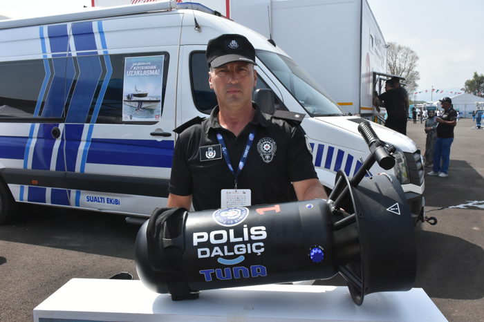 Akkuş, stantlarına gelenlere dalgıç malzemelerini de tanıttıklarını dile getirerek, "Bu aracımızı ilk gördüklerinde anlamlandıramıyorlar. O konuda açıklayıcı oluyoruz, çalıştırıyoruz. Özellikle çocuklar çok meraklı oluyor." ifadesini kullandı.