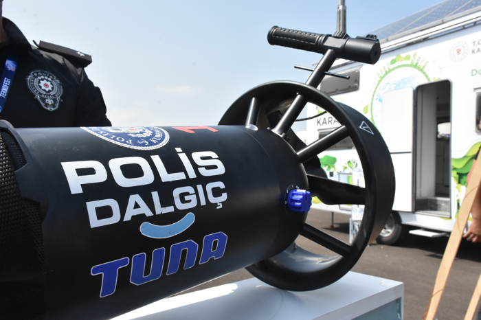 Dünyanın en büyük havacılık, uzay ve teknoloji festivali TEKNOFEST'te emniyet standında "skuter" olarak adlandırılan su altı intikal aracı da sergileniyor.