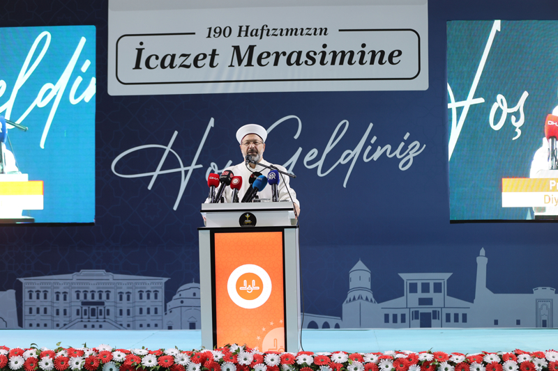 Hafızlığın "Kur'an'ı muhafaza eden" anlamına geldiğini belirten Erbaş, merasimlerin en hayırlısının olduğu bir programa katılmanın mutluluğunu yaşadığını dile getirdi.