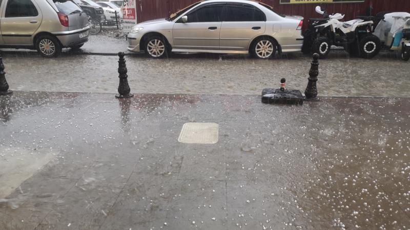 Kentte akşam saatlerinde başlayan ve etkisini artıran şiddetli sağanak ve dolu, yaşamı olumsuz etkiledi.