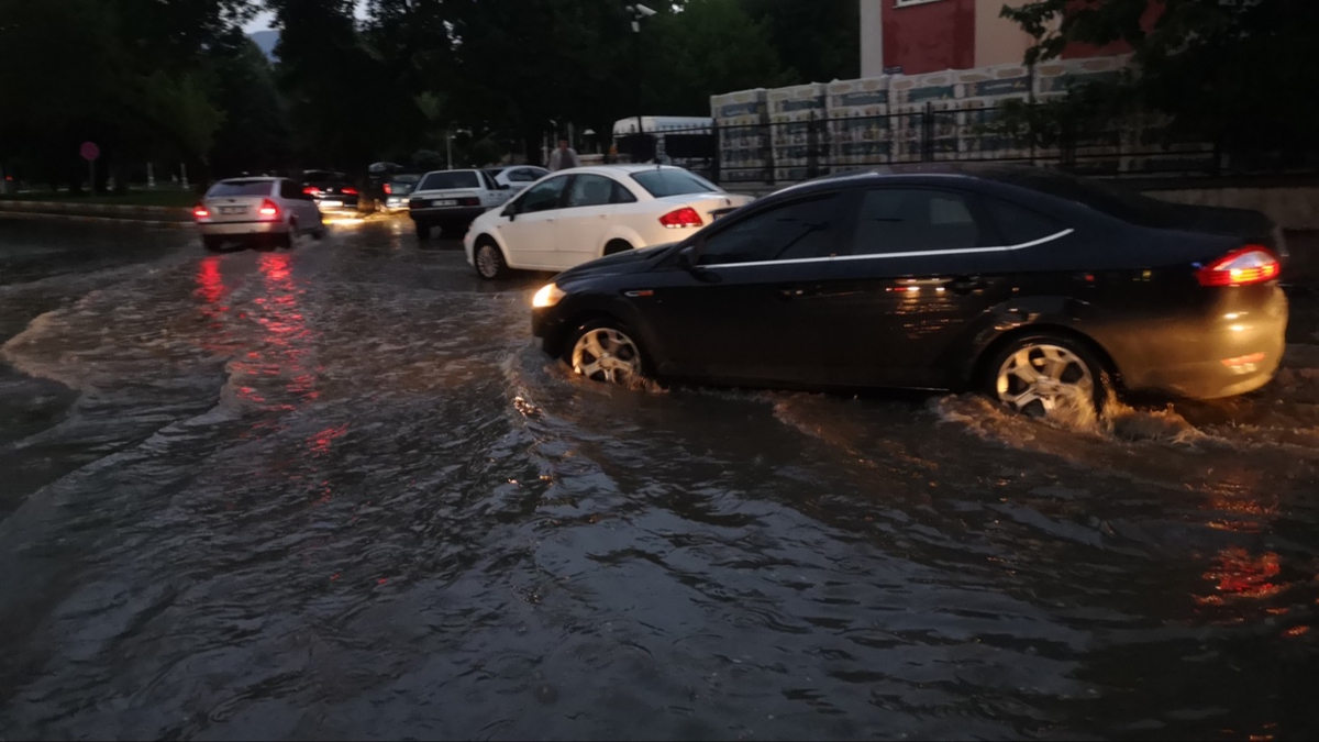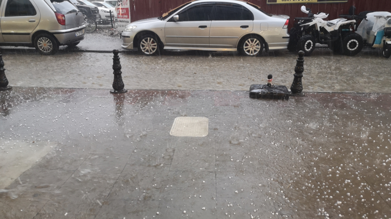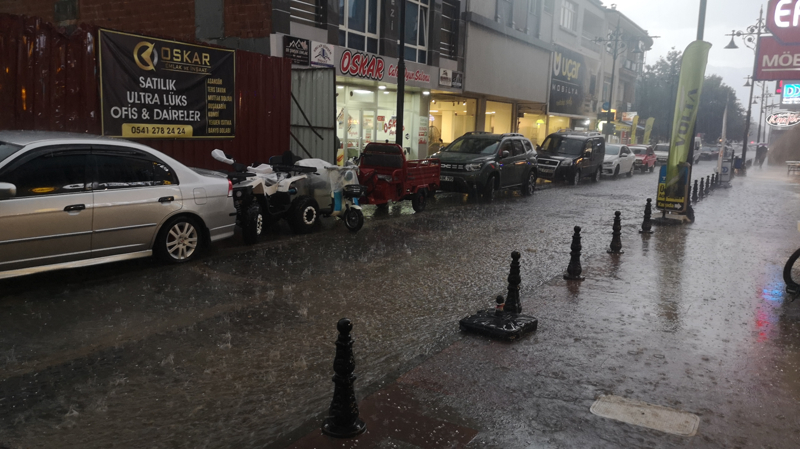 Sağanak ve dolu nedeniyle kent merkezindeki birçok cadde ve sokakta su birikintisi oluştu.