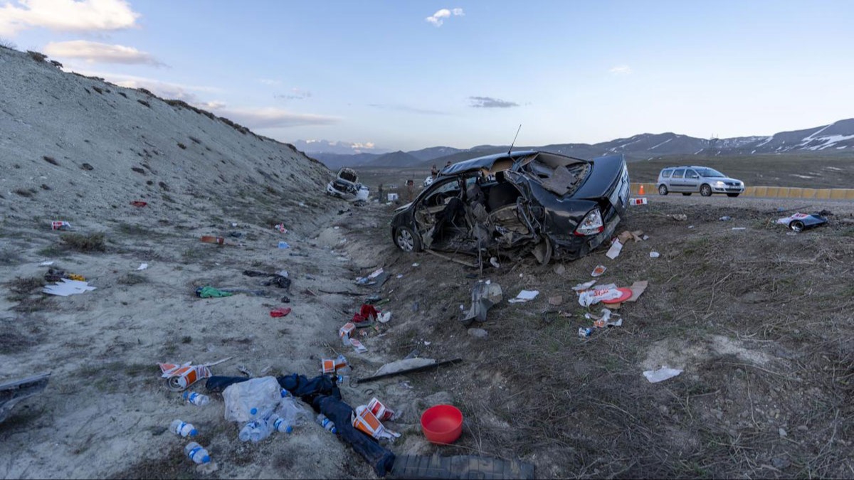 Çarpışmanın etkisiyle araçlar şarampole savruldu.