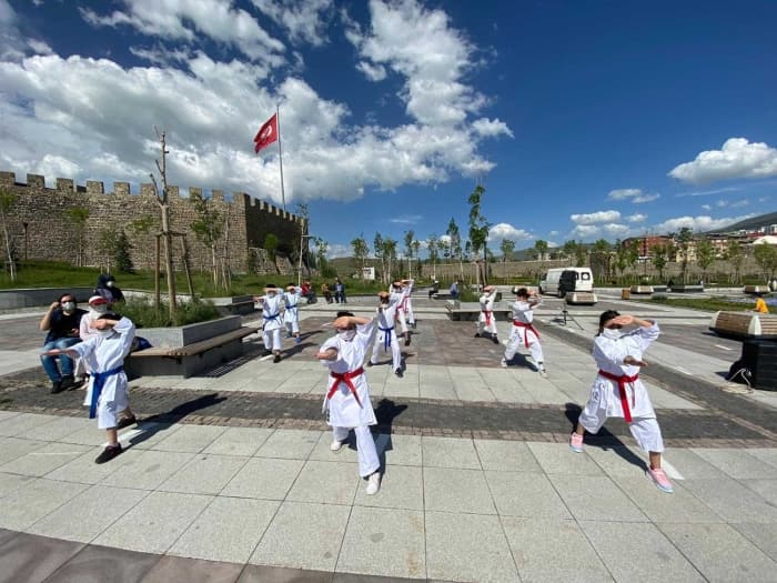 Erzurum Gençlik ve Spor İl Müdürlüğünden (GSİM) yapılan açıklamaya göre yeni tip koronavirüs (Kovid-19) salgınıyla mücadele kapsamında Kale Kent Meydanı'nda kontrollü spor gösterisi gerçekleştiren genç ve minik sporcular, vatandaşlardan alkış aldı.
