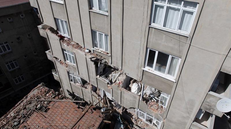 Zarar gördüğü için tahliye edilen 2 binada ise ekiplerin incelemeleri devam ediyor.