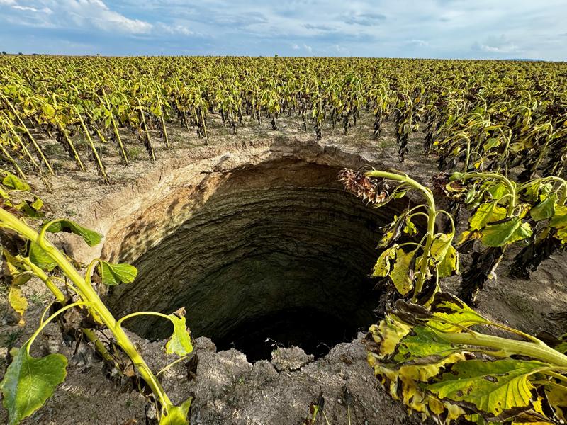 İlçeye bağlı kırsal Sadıroğlu Mahallesi'nde yaşayan Erkan Ceylan, kendisine ait ayçiçeği tarlasında obruk oluştuğunu fark etti.