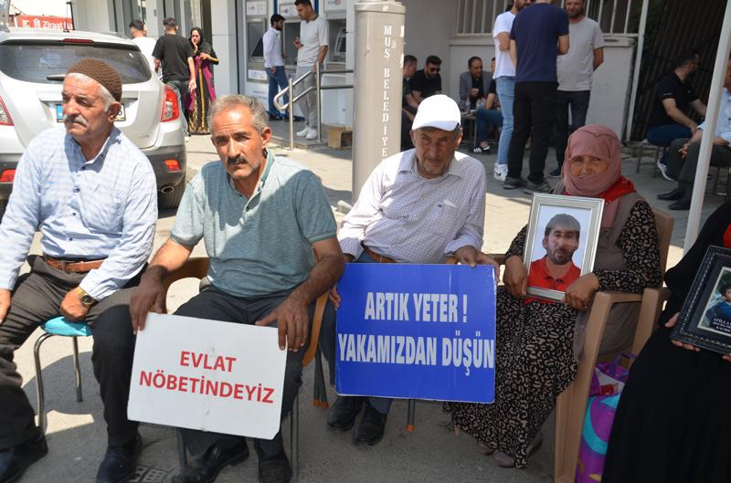 Aileler, "Anneler direniyor", "Evlat nöbetindeyiz" ve "Artık yeter yakamızdan düşün" yazılı pankartlar taşıdı.