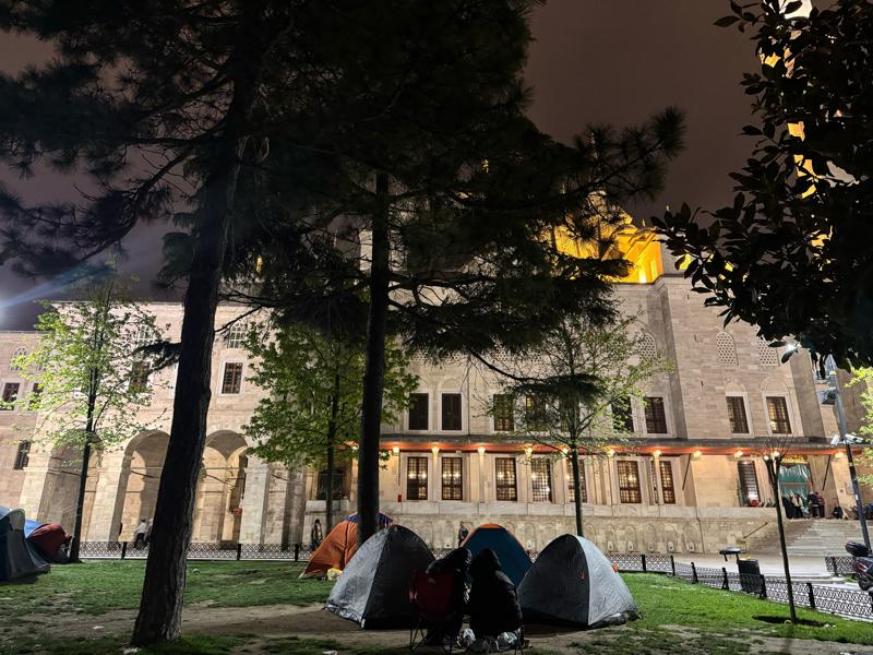 Depremin ardından evlerine girmek istemeyen bazı vatandaşlar, Fatih Camisi'nde kalmayı tercih etti.