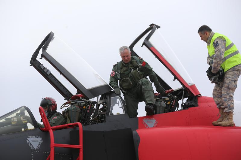 Kadıoğlu daha sonra F-4E Phantom 2 uçağının Türkiye'ye ilk geldiği dönemde, Filo Komutanı olarak görev yapan emekli Hava Kuvvetleri Komutanı Orgeneral Ergin Celasin'le uçağa binerek fotoğraf çektirdi.