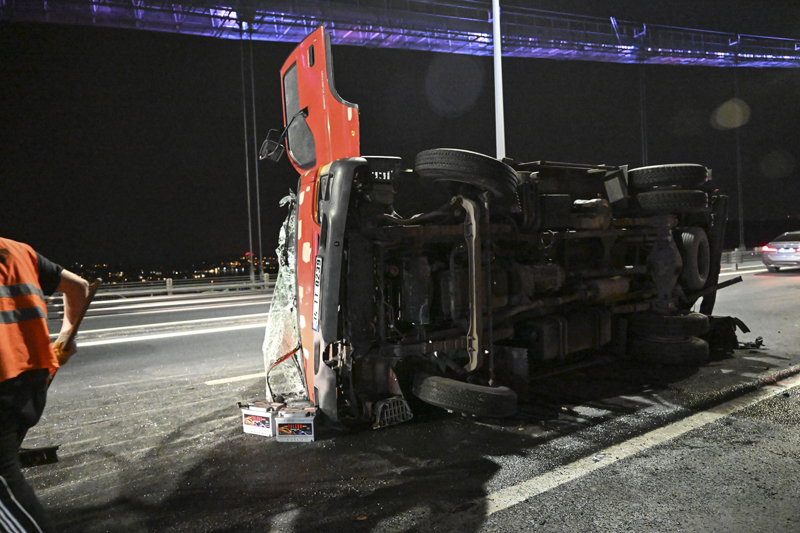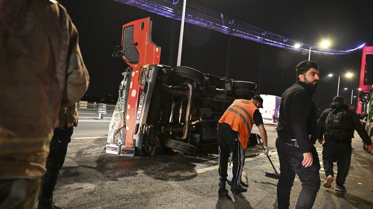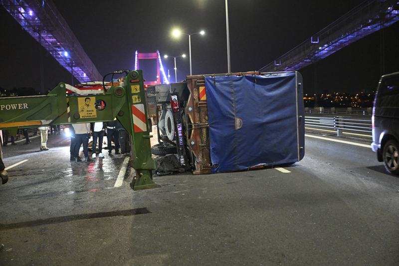 Kaza nedeniyle köprü üzerinde trafik yoğunluğu yaşanırken, kazaya karışan kamyon ve otomobil çekici yardımıyla olay yerinden kaldırıldı.