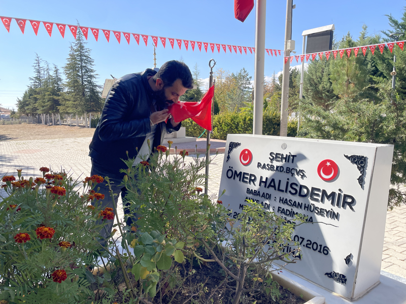 Şehidin kabrini ziyarete gelenlerden Efe Kahveci, AA muhabirine, 15 Temmuz'un kahramanı Halisdemir'i böyle bir günde ziyaret etmenin kendilerine farklı duygular yaşattığını söyledi. Kahveci, "Onun için dua edeceğiz, tüm şehitlerimiz için dua ediyoruz." dedi.