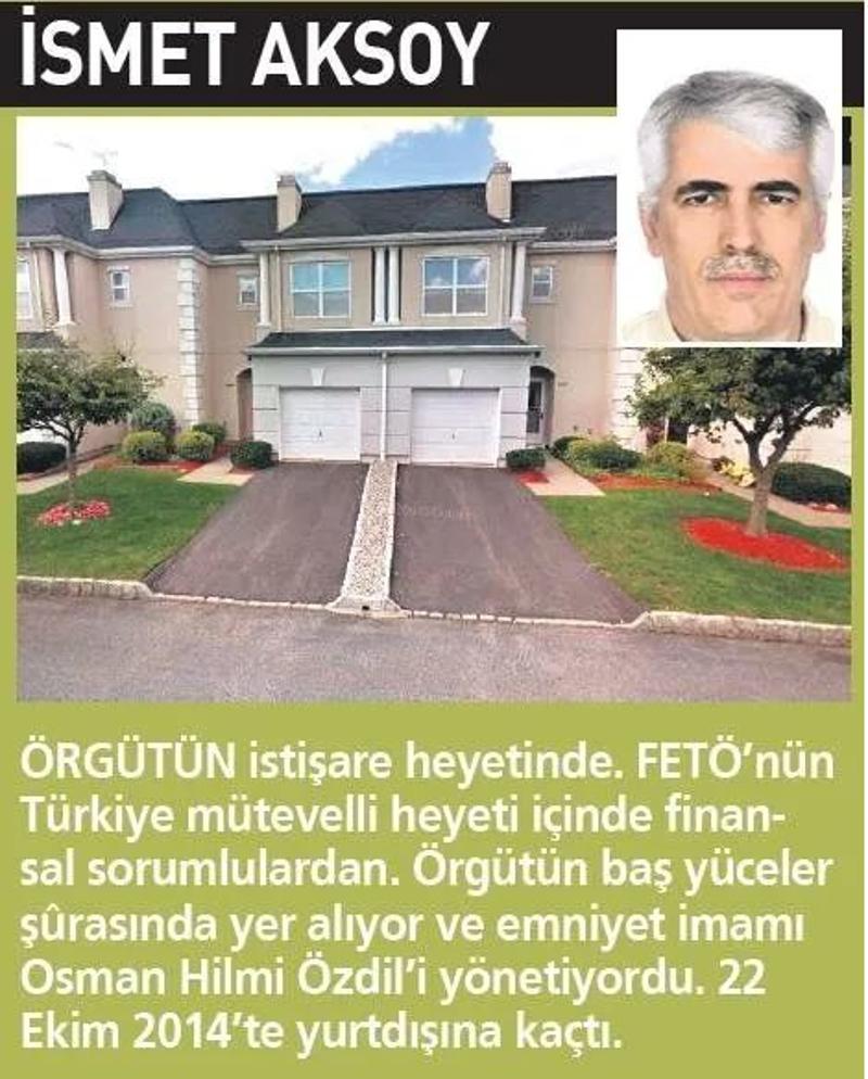 15 Temmuz hain darbe girişimi öncesi, Fetullahçı Terör Örgütü'nün (FETÖ) kanlı planını devreye sokan elebaşı Fetullah Gülen'e yakın isimlerin neredeyse hepsi Amerika Birleşik Devletleri'ne (ABD) kaçtı. FETÖ'nün sözde istişare ve molla heyetinde yer alan firari yöneticilerinin yaşadığı lüks hayat deşifre oldu. Örgütün beyin takımındaki firari 18 kişinin oturduğu lüks villaların fotoğraflarına ulaşıldı. FETÖ elebaşı Fetullah Gülen, ABD'den yönettiği örgütte istişare heyeti oluşturdu. Örgütün Türkiye imamlığı, para kasalığı ve mahrem yapılarını yöneten birçok ismi de sözde istişare heyeti üyesi yaptı. Darbe girişimi öncesi Amerika'ya kaçan beyin takımı ve aileleri, darbenin başarılı olması halinde elebaşı Gülen'le birlikte Türkiye'ye dönmeyi planlıyordu. 'Himmet/bağış' adı altında topladıkları paraları da yurtdışına çıkaran firariler, bu paralarla ABD'de lüks bir yaşam sürüyor. Örgütün 18 tepe yöneticisinin yaşadığı lüks villalar, bu şatafatlı yaşamı da gözler önüne seriyor. Sabah'ın haberine göre, İşte ABD'de standartların üstünde lüks bir yaşam süren isimler ve oturdukları villalar: