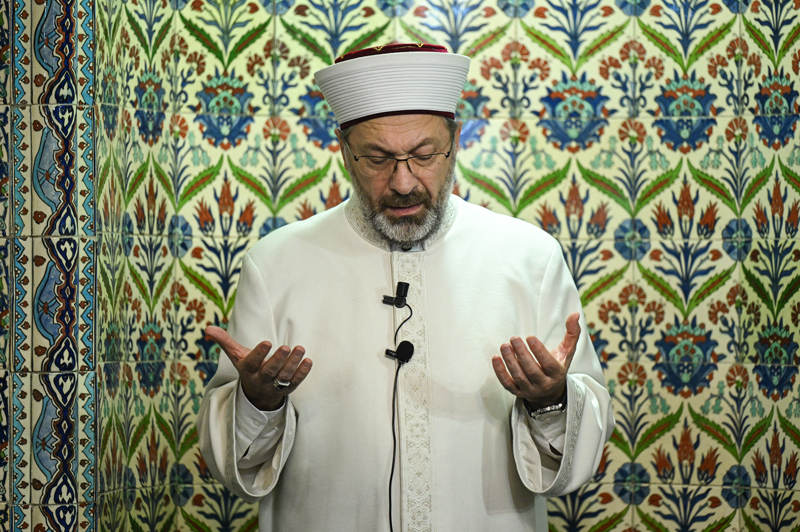 Diyanet İşleri Başkanı Erbaş konuşmasının ardından İsrail'in saldırısına uğrayan Gazzeliler için cemaatle birlikte dua etti.