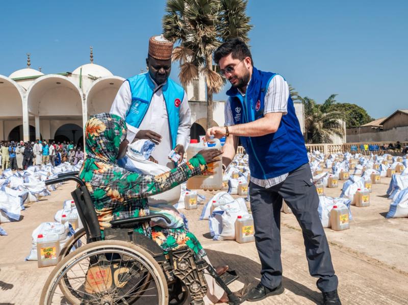 TDV'nin Gambiya ekibi de temel ihtiyaç malzemelerinin bulunduğu 1200 yardım kolisini yoksul ailelere teslim etti.