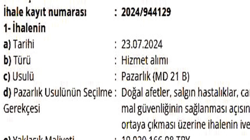 CHP'li Gaziosmanpaşa Belediyesi'nin ihalesi skandala dönüştü. Belediyeye bağlı Kültür ve Sosyal İşler Müdürlüğü tarafından 7 Ağustos 2024'te 'Kültür sanat programları organizasyonu' ihalesi yapıldı. İhale 'Doğal afetler ve salgın hastalıklar' gibi acil durumlarda devreye giren '21 B' maddesine göre pazarlık usulü düzenlendi. 19 milyon 20 bin 166 TL bedel biçilen ihale 18 milyon 875 bin TL'ye davet edilen tek firmaya verildi.