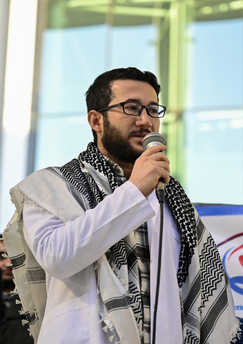 İsrail'in Gazze'de insanları katletmeye devam ettiğini vurgulayan Aydoğan, "Gazze'de dünyanın en kural tanımaz, terör devleti İsrail var. Onun en gelişmiş silahları ve sesten hızlı F-16 uçaklarıyla kadınlara ve çocuklara, bebeklere, savunmasız bir halka, cadde ve sokaklarda aralıksız süren bir katliam ve bombalama yapılıyor. Dİğer taraftan azmi ve sabrı kendilerine rızık edinmiş bir halk ve direniş var. Gazze, gözlerimizle ve kelimelerle anlayabileceğimiz, ifade edebileceğimizden çok farklı bir yer." dedi.