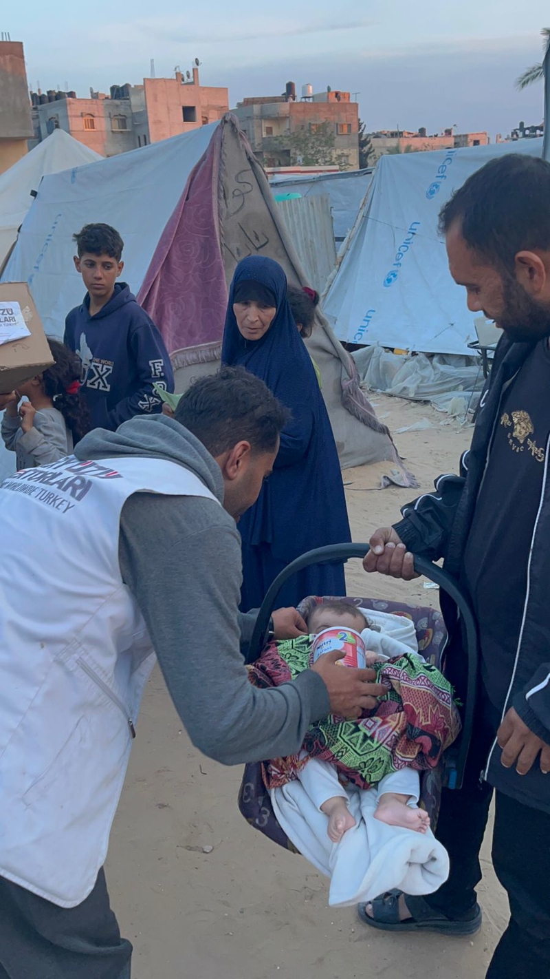 Gazze'de ekim ayında başlayan ve 6 aydan fazladır süren saldırılarda insanlık dramı yaşanmaya devam ediyor. Bölgede baş gösteren sağlık sorunları ve açlık krizi giderek büyürken özellikle saldırılardan en çok etkilenen bebekler ve kadınlar oluyor. Yeryüzü Doktorları krizin ilk gününden beri yaralılara acil tedavi hizmeti verirken insani yardım çalışmalarıyla da en temel ihtiyaçları karşılamaya devam ediyor. Bu kapsamda Gazze'de bulunan çadır kamplarda açlığın eşiğinde olan bebekler için tüm imkanları seferber ediyor. Şehrin içinden tedarik ettiği tüm bebek mamalarını açlıktan en çok etkilenen yeni doğan ve beş yaş altı çocuklara ulaştırdı.