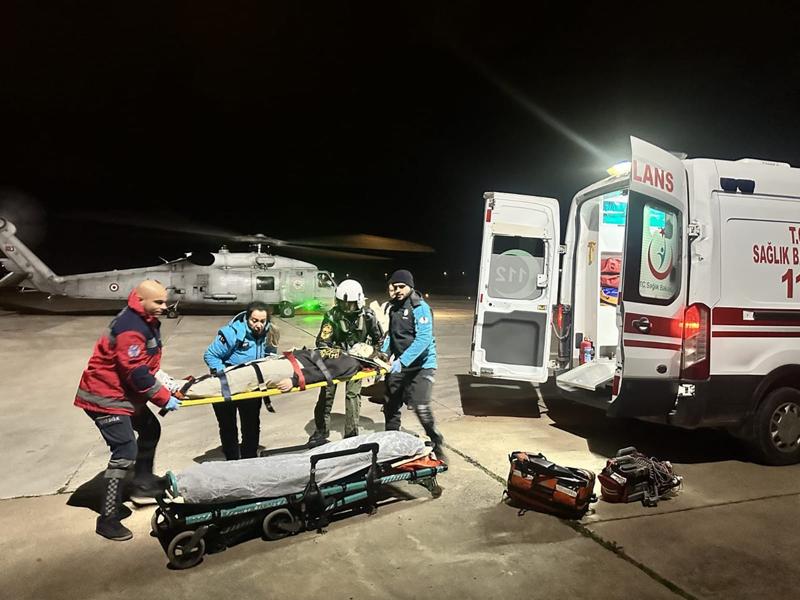 Gökçeada Devlet Hastanesi Acil Servisi'ne başvuran ve ileri tedavi gerektiren bir hasta, feribot seferlerinin yapılamamasından dolayı Çanakkale Mehmet Akif Ersoy Devlet Hastanesi'ne askeri helikopterle sevk edildi.