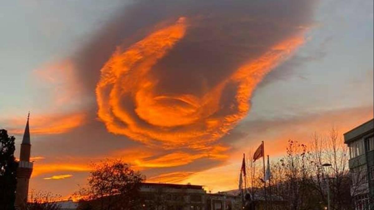 Adeta alev topunu andıran bulutu gören vatandaşlar, cep telefonlarıyla bu anı kaydederken, farklı yerlerinden çekilen fotoğraflar sosyal medyada paylaşıldı.