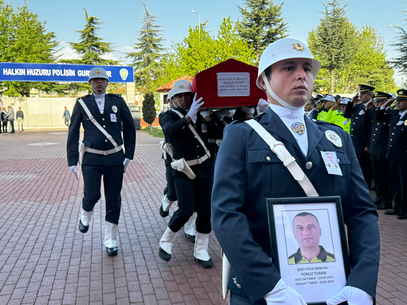 Isparta Şehir Hastanesi'nden alınan şehidin naaşı, helallik için önce evine ardından Isparta İl Emniyet Müdürlüğü avlusuna getirildi.