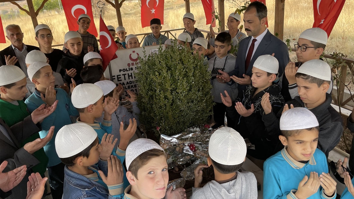 Şehidin kabrine karanfiller bırakan öğrenciler, daha sonra Kur'an-ı Kerim okudu, dua etti.