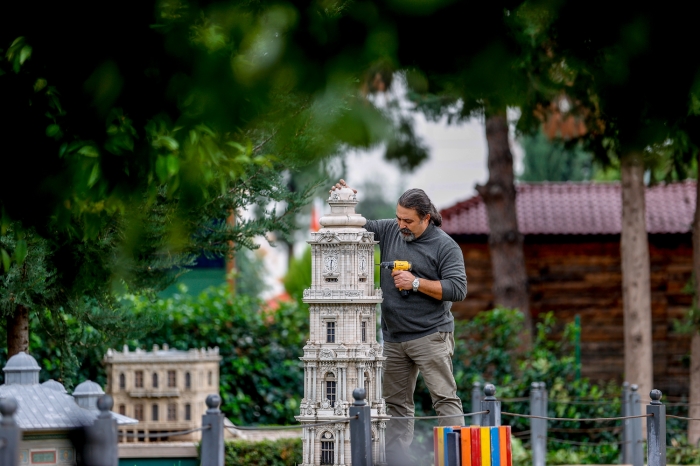 Haftada bir gün öğrencileriyle minyatür parka gelen Kaya, tadilat için erken saatlerde işe koyuluyor. Kaya, bazen söktüğü minareyi omzunda taşıyarak onarım yapacağı yere götürüyor, bazen de minyatürlerin kubbe ve çatısında saatlerce küçük dokunuşlarla tadilat yapıyor.