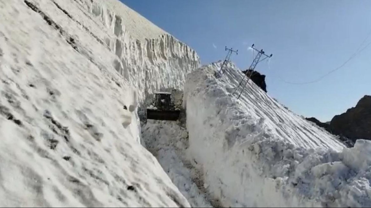 Kış aylarının çetin geçtiği Hakkari'de, İl Özel İdaresi Yol ve Ulaşım Hizmetleri Müdürlüğüne bağlı ekipler, yaz ayında da karla mücadele çalışmalarını sürdürüyor. Kar kalınlığının yer yer 7-8 metreyi bulduğu bölgede zor şartlarda görev yapan ekipler, haziran ayı sonlarında olunmasına rağmen bazı noktalarda ekskavatör kullanarak ilerleyebiliyor.