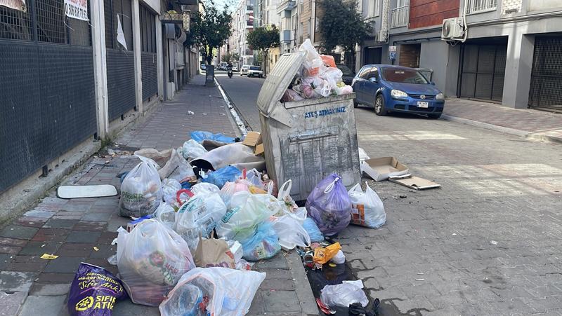 Temizlik işçilerinin eylemi nedeniyle ilçedeki bazı mahallelerde konteynerler ve çevresinde çöp yığınları oluştu.